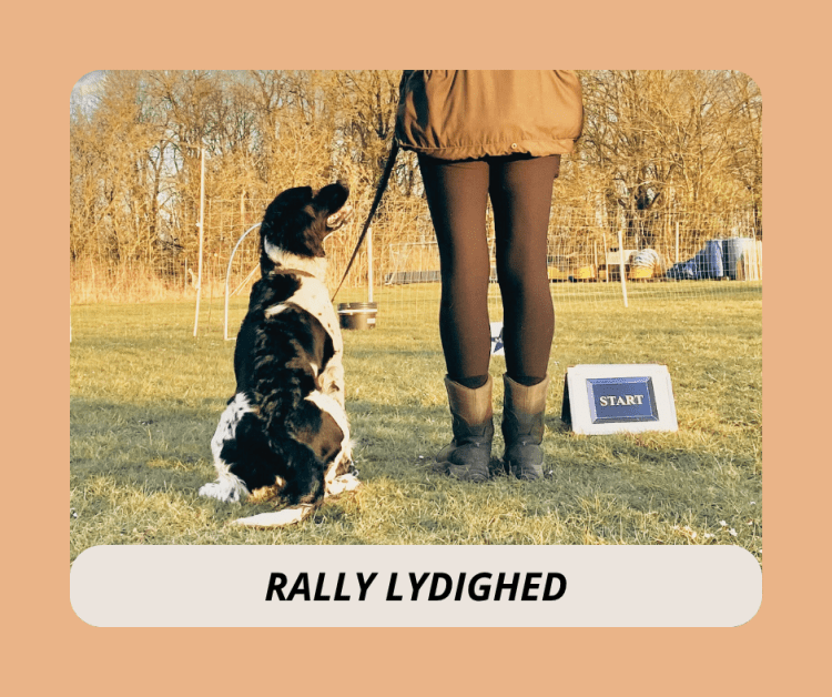 I Rally skal hunden lære at udføre div. lydighedsøvelser ud fra skilte der danner en bane.